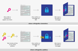 Due metodi di comunicazione crittografica. Il primo si basa sulla condivisione di una sequenza casuale di bit: la chiave. Se questa è perfettamente casuale, lunga quanto il messaggio (in bit) e usata una sola volta, per un teorema matematico il messaggio criptato non può essere decodificato in alcun modo. Il secondo metodo si basa sulla difficoltà computazionale di invertire alcune funzioni. Il metodo è più semplice in quanto non richiede di condividere chiavi arbitrariamente lunghe. La sua sicurezza però non è garantita: un computer quantistico potrebbe comprometterne la sicurezza (vd. anche in Fotoni e segreti, ndr).