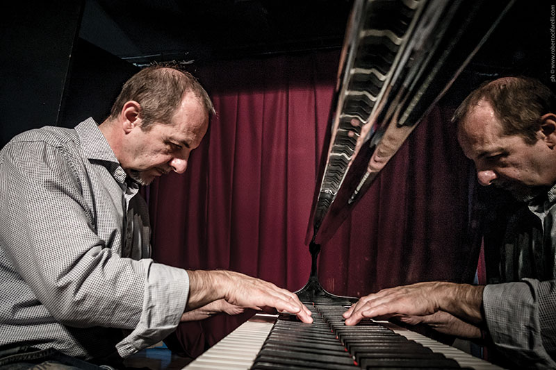 Umberto Petrin al pianoforte durante l’evento “Di arte e di scienza”, una conferenza spettacolo organizzata dall’Infn come evento conclusivo della prima edizione di “Art&Science across Italy” (Napoli, Teatro Diana, 6 aprile 2017).
