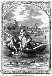 Nel 1842 uscì a puntate, su un giornale femminile, “The Ladies’ Companion”, la seconda avventura del cavalier Dupin, “Il mistero di Marie Rôget”, nel quale il geniale investigatore nato dalla penna e dalla bottiglia di Edgar Allan Poe si occupa dell’assassinio di una bella giovane parigina, Marie Rôget, il cui cadavere viene trovato lungo l’argine della Senna. Nel racconto di Poe, Dupin, geniale investigatore armato di spirito di osservazione, di una logica ferrea e di uno stile di ragionamento matematico che alterna induzione e deduzione, osserva come una indagine possa condurre a conclusioni completamente diverse a seconda che un piccolo dettaglio, apparentemente insignificante, sia trascurato o compreso nell’analisi. Le parole di Poe, tramite Dupin, sono queste: