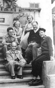 Partendo dall’alto a sinistra e procedendo in senso orario: Ginestra Amaldi, Laura Fermi, Edoardo Amaldi e il figlio Ugo, Enrico Fermi e il figlio Giulio (Pera di Fassa, 1954).