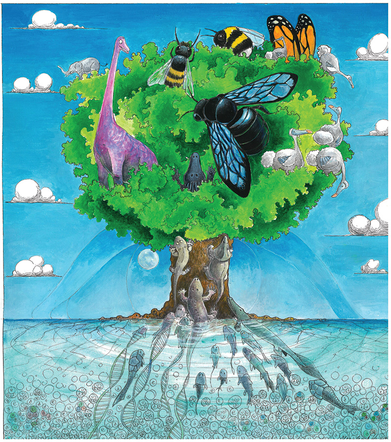 “L’albero di una vita”, pittura acrilica su carta, illustrazione e testo di Alessandro Nagar