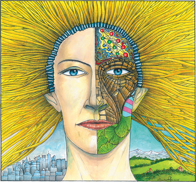 Intelligenza nata da un artificio tecnologico, sintesi del tutto e del nulla, frammenti d’informazione tradotti in conoscenza. Vivida, conserva lo spirito del suo creatore. Algida utilità senza tempo o usbergo di sentimenti?