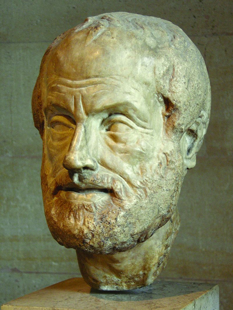 Ritratto di Aristotele (busto in marmo, Museo del Louvre, Parigi). Copia del I o II sec. a. C. di una scultura in bronzo di Lisippo andata persa.