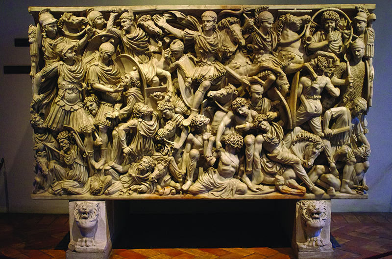 L’horror vacui (terrore del vuoto) è un concetto che ricorre in varie discipline. In fisica e in filosofia indica una teoria ideata da Aristotele che afferma che “la natura rifugge il vuoto” (natura abhorret a vacuo) e perciò lo riempie costantemente. Nell’arte definisce l’atto di riempire completamente l’intera superficie di un’opera con dei particolari finemente dettagliati. Analogo uso conosce nella decorazione e nell’arredamento. Un esempio di horror vacui nell’arte è il sarcofago “Grande Ludovisi” nella foto, un’opera del III secolo conservata a palazzo Altemps a Roma. In questo caso una scena di battaglia tra romani e barbari è raffigurata come un ammasso di corpi che riempie tutta la superficie.