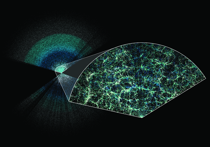 La più precisa, vasta e dettagliata mappa 3D dell’universo mai realizzata, ottenuta recentemente dai dati raccolti dallo strumento DESI (Dark Energy Spectroscopic Instrument) in Arizona. Questa mappa permetterà di misurare l’espansione del cosmo negli ultimi 11 miliardi di anni e il ruolo che ha in questo processo la misteriosa energia oscura.