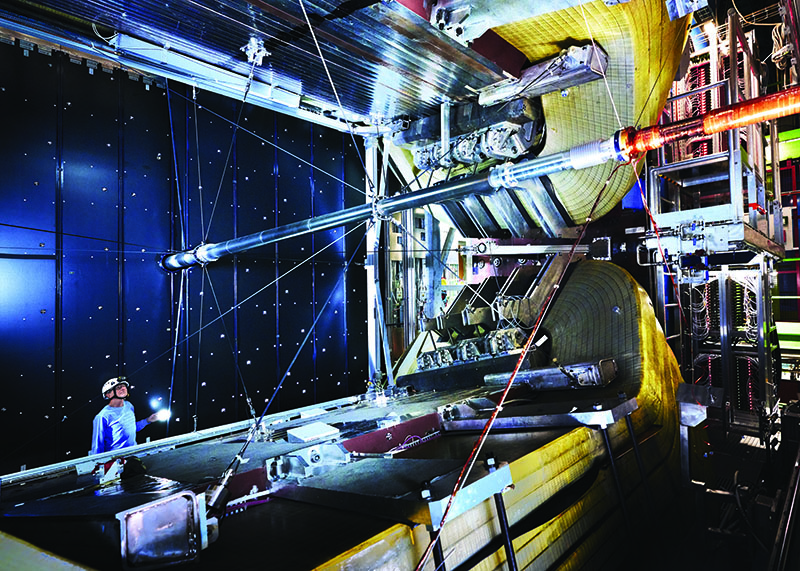 Camera da vuoto del rivelatore LHCb tenuta in posizione da corde in kevlar. Il pompaggio del gas residuo si basa su un film sottile di titanio-zirconio-vanadio, una pompa getter sviluppata al CERN.