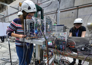 Foto relativa a una delle fasi della campagna di test condotta nel 2018 al Cern su Myriad 2 (Intel), chip di intelligenza artificiale dedicato all’integrazione grafica, per conto dell’Agenzia Spaziale Europea (Esa). Il funzionamento dell’unità di processazione video viene verificato a seguito della sua esposizione a radiazione per comprenderne il possibile utilizzo in ambito spaziale.