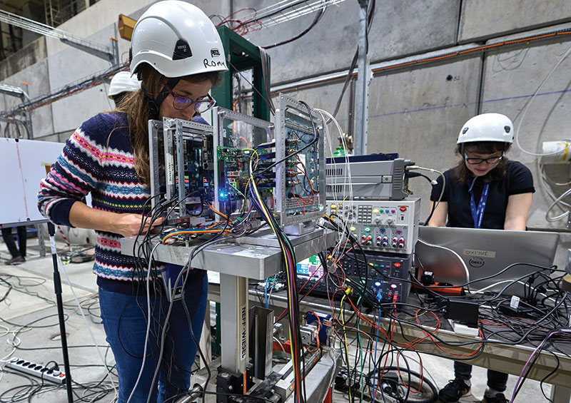 Gli stadi analogico, di conversione analogico-digitale e quello di trasmissione dei dati generati vivono in intimo contatto col sensore, con la conseguenza che i gangli vitali del sistema elettronico sono costituiti da circuiti ad altissima integrazione (microchip). Un microchip che legga i sensori a pixel della prossima generazione integrerà centinaia di migliaia di canali su una superficie di alcuni centimetri quadrati e genererà un flusso di dati pari a centinaia di miliardi di bit per secondo. Inizia dunque a essere conveniente elaborare la copiosissima informazione generata dal rivelatore subito dopo la conversione digitale, piuttosto che inviarla all’esterno dell’apparato. I microchip, integrati con i sensori stessi, sono sempre più simili a un intero sistema su chip, composto da più microsistemi densamente interconnessi fra loro. L’apparato diventa “intelligente” e, con algoritmi di intelligenza artificiale, inizia a imparare a elaborare i dati “riconoscendo” gli eventi. Fra qualche generazione tecnologica avremo sistemi che interpretano da soli i dati e suggeriscono nuovi algoritmi di analisi? Questa è fantascienza, non è certo dietro l’angolo, ma è sicuramente lungo la strada che stiamo già percorrendo. Intanto il gigantesco tecno-organismo intelligente inizia a prender forma…