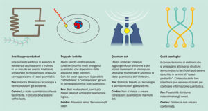 Panoramica delle piattaforme fisiche già utilizzate o candidate per la realizzazione di dispositivi di calcolo quantistici.