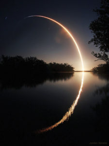 La spettacolare scia tracciata nel cielo dal decollo del vettore Falcon 9, che ha effettuato il lancio di IXPE dal Kennedy Space Center della NASA il 9 dicembre 2021.
