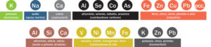 Schema dei metalli misurati con PIXE e sorgenti di emissione correlate.