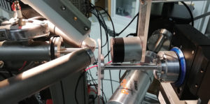 Apparato per misure PIXE rapide e sensibili, presso l’acceleratore del LABEC, su campioni di particolato atmosferico, con un fascio di protoni estratto in aria. L’elevato livello di sviluppo tecnologico ha posto il LABEC in una riconosciuta posizione di eccellenza a livello internazionale nel campo dell’analisi degli elementi presenti nel particolato atmosferico. Proprio grazie a questo il LABEC è entrato a far parte di ACTRIS ERIC, il consorzio dell’Infrastruttura di Ricerca Europea ACTRIS (Aerosols, Clouds and Trace Gases Research Infrastructure), che coordina le osservazioni e la ricerca scientifica su atmosfera e clima.
