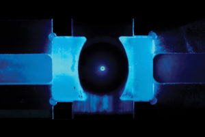 Raffreddamento del moto di una nanosfera di vetro allo stato fondamentale per mezzo di una cavità ottica nell’esperimento viennese di Markus Arndt.